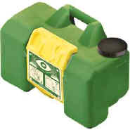 - Portable gravity operated eyewash station features a 9