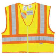 Class 2 polyester mesh vest that has a dielectric zipper front closure,