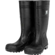 is a black PVC over the sock boot with plain toe. It features a deeper