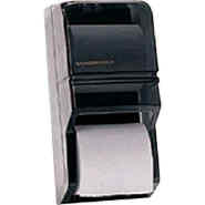 The Standard Bath Tissue Dispenser holds two rolls of bath tissue, up to 5 5/16" diameter and 4 1/2" wide. A great choice where space is limited. Smoke. 6/Case.