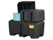 Accommodates two 55-gallon drums. Dual covers can be