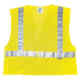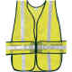 This non-certified vest is made of 2.6 oz polyester mesh with two vertical, 1" reflective tape stripes and has a hook-and-loop closure. One size.