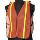 Vest has 3" orange and 2" silver reflective striping and zipper front closure.
