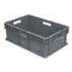 Containers are constructed from injection-molded, industrial-grade polymers with 1" stacking rims and external ribbing for maximum strength and durability.